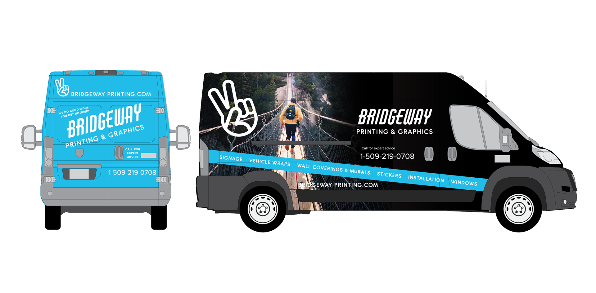 Bridgeway Rebranding campaign included a new website, car wraps, ad campaigns on social media, postcards, business cards, and more
